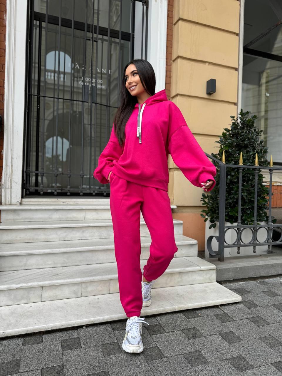 Повсякденний костюм , кофта з капюшоном вільного крою . Штани з карманами на резинці .